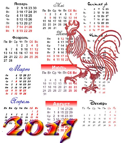 Календарные сетки на 2017 год - Год петушка